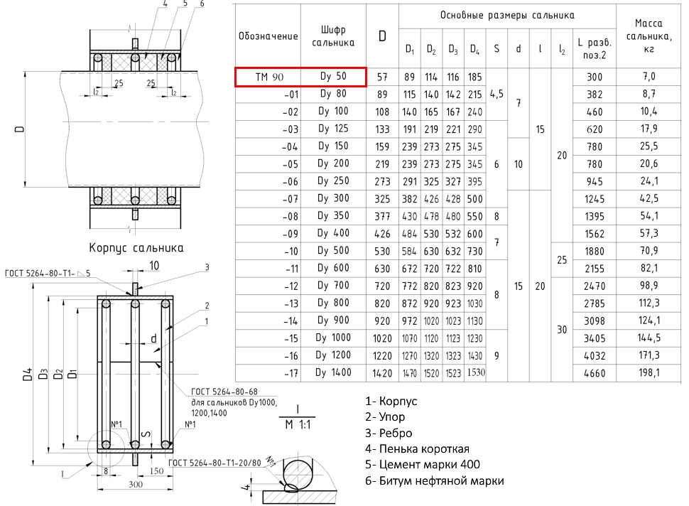 Сальник набивной ТМ 90 Ду 50 L=300мм серия 5.900-2