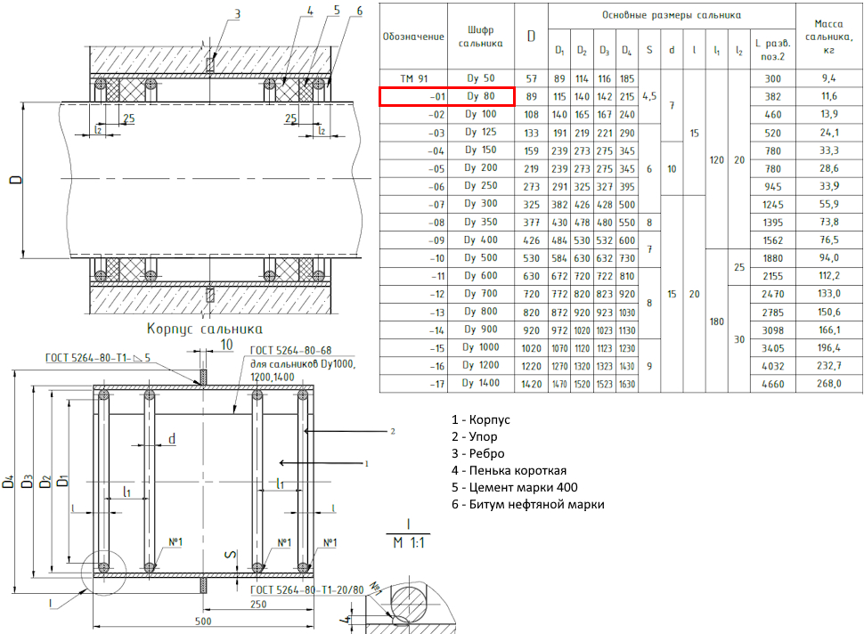 Сальник набивной ТМ 91-01 Ду 80 L=500мм серия 5.900-2