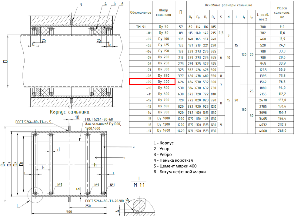 Сальник набивной ТМ 91-09 Ду 400 L=500мм серия 5.900-2