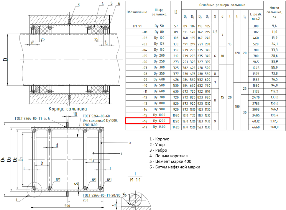 Сальник набивной ТМ 91-16 Ду 1200 L=500мм серия 5.900-2