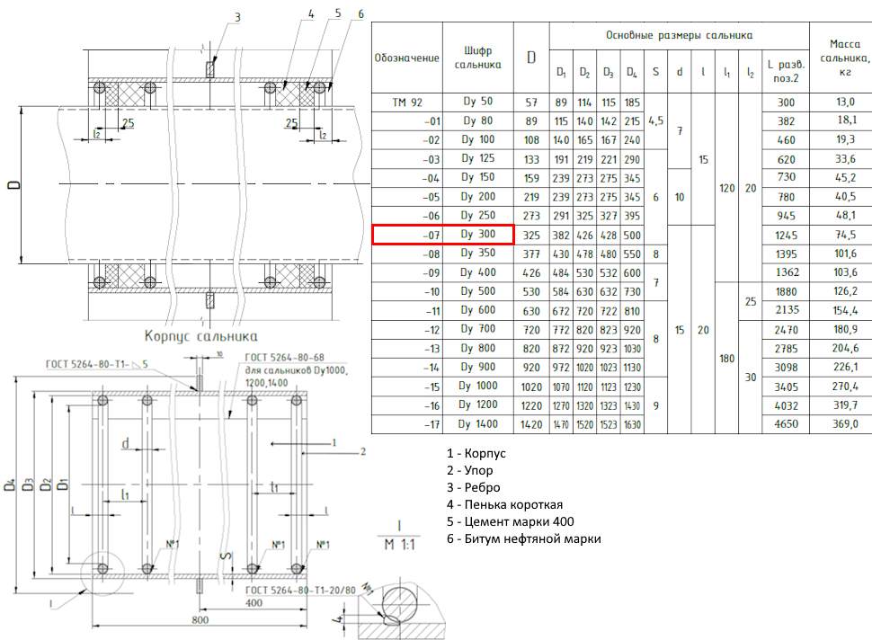 Сальник набивной ТМ 92-07 Ду 300 L=800мм серия 5.900-2