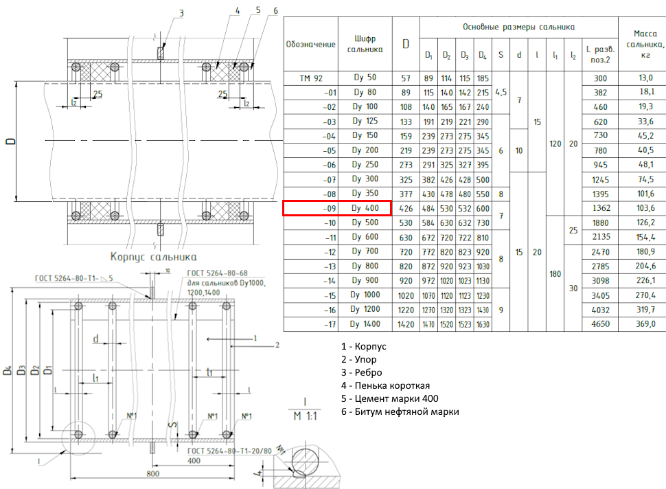 Сальник набивной ТМ 92-09 Ду 400 L=800мм серия 5.900-2
