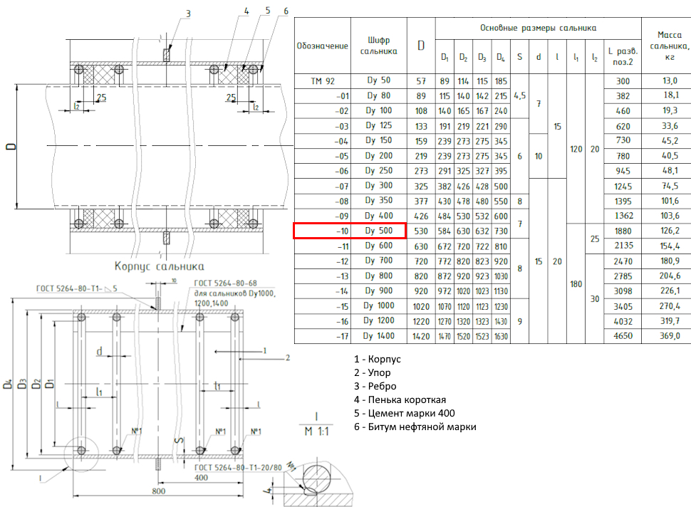 Сальник набивной ТМ 92-10 Ду 500 L=800мм серия 5.900-2