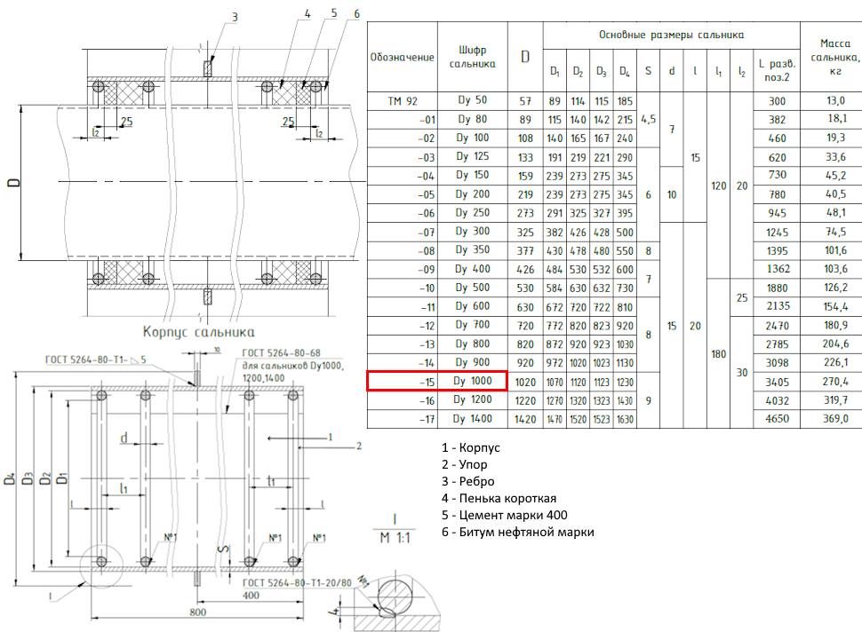 Сальник набивной ТМ 92-15 Ду 1000 L=800мм серия 5.900-2