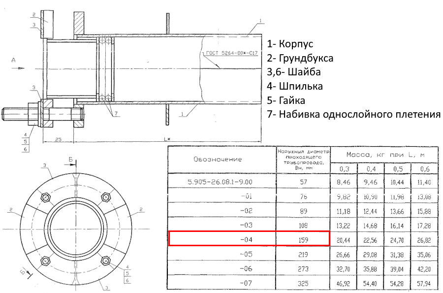 Сальник нажимной С-3 Ду 159 L=400 мм 5.905-26.08.1-9.04