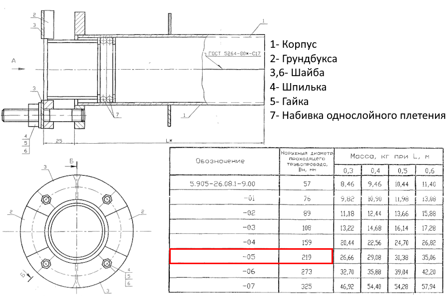 Сальник нажимной С-3 Ду 219 L=600 мм 5.905-26.08.1-9.05