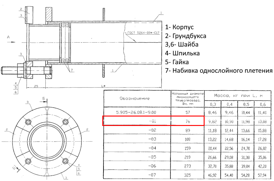 Сальник нажимной С-3 Ду 76 L=300 мм 5.905-26.08.1-9.01