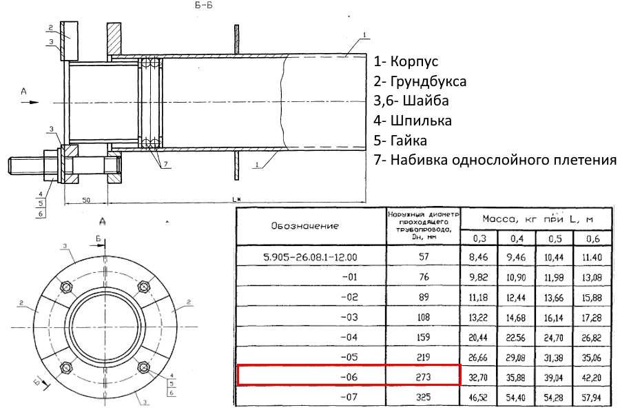 Сальник нажимной С-6 Ду 273 L=300 мм 5.905-26.08.1-12.06
