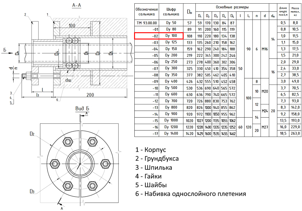 Сальник нажимной ТМ 93-02 Ду 100 L=200мм серия 5.900-3 ТМ 93.00.00-02