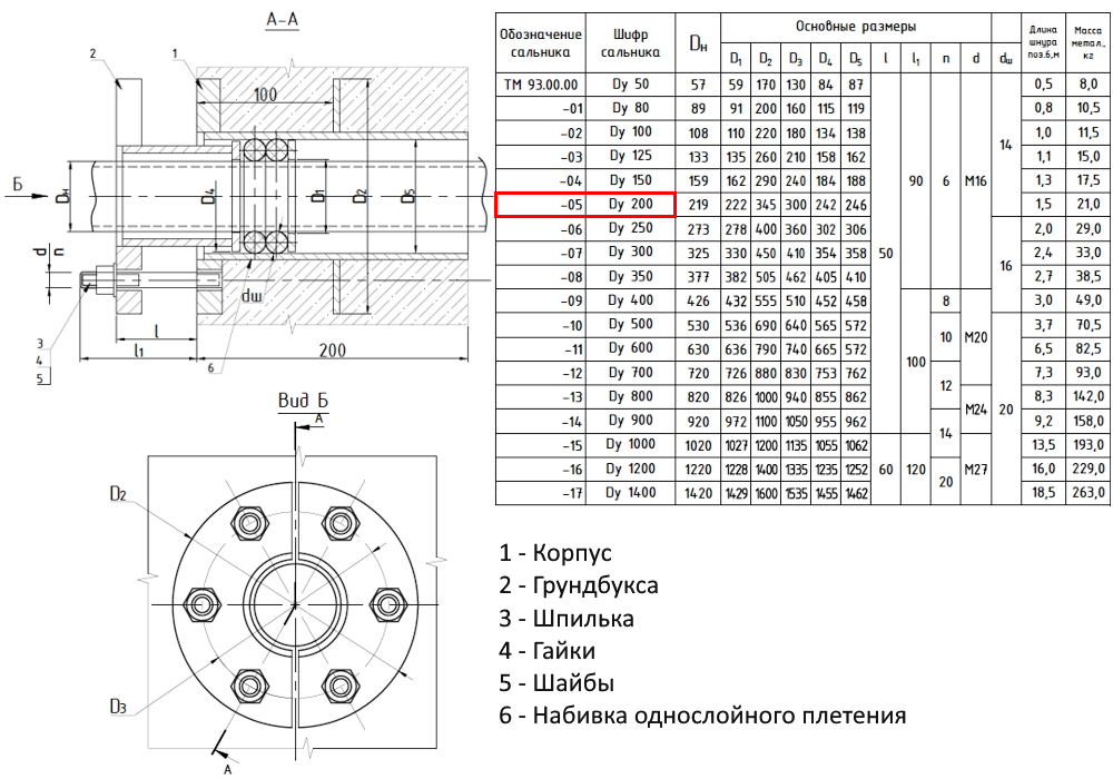 Сальник нажимной ТМ 93-05 Ду 200 L=200мм серия 5.900-3 ТМ 93.00.00-05
