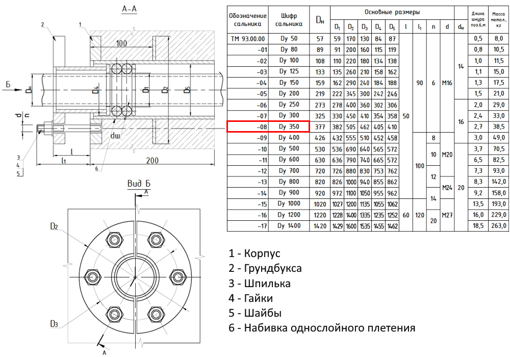 Сальник нажимной ТМ 93-08 Ду 350 L=200мм серия 5.900-3 ТМ 93.00.00-08