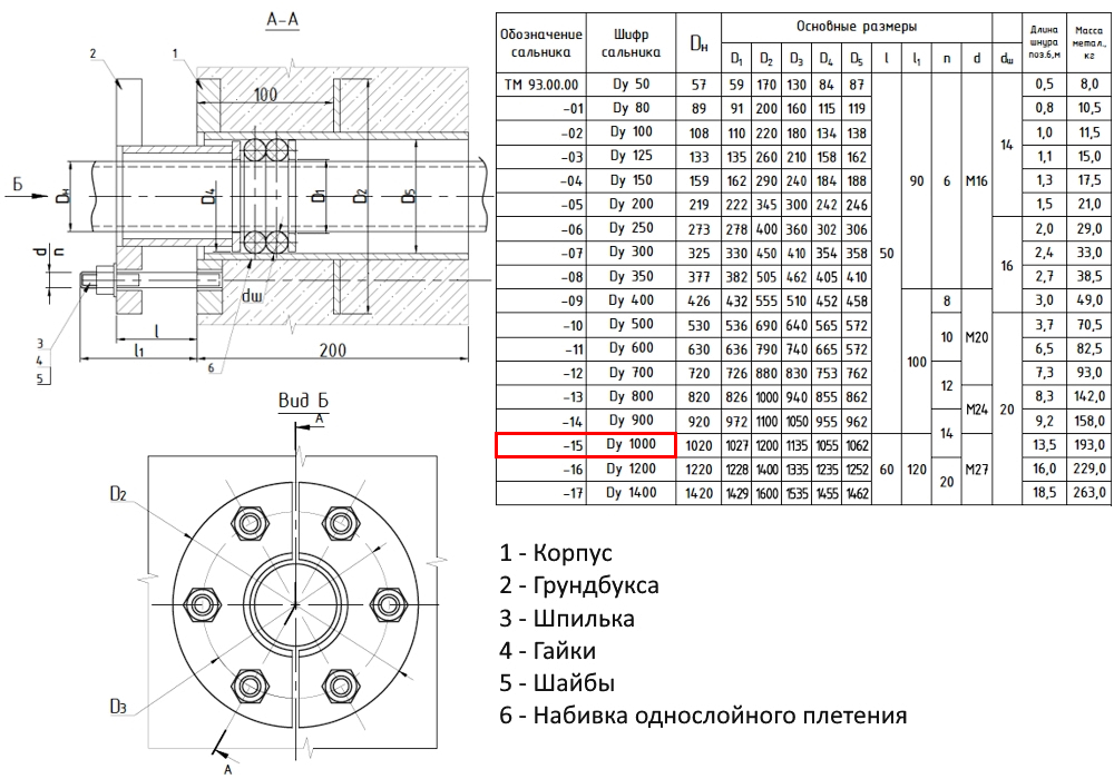 Сальник нажимной ТМ 93-15 Ду 1000 L=200мм серия 5.900-3 ТМ 93.00.00-15