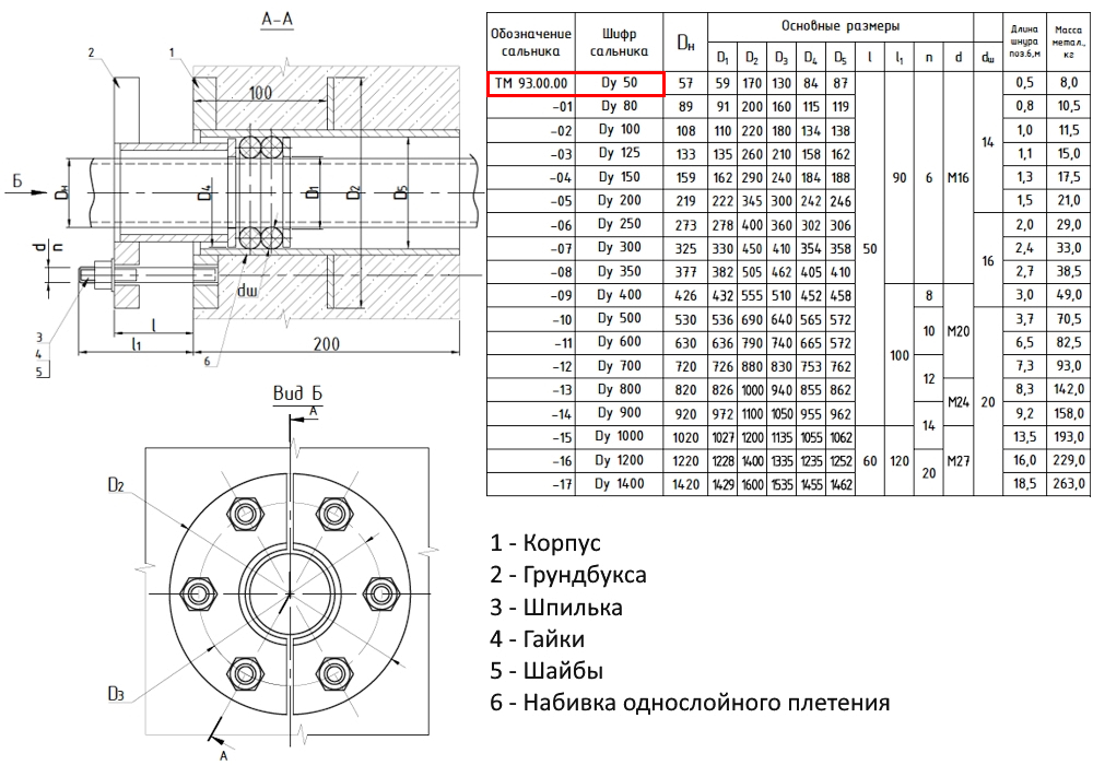 Сальник нажимной ТМ 93 Ду 50 L=200мм серия 5.900-3 ТМ 93.00.00