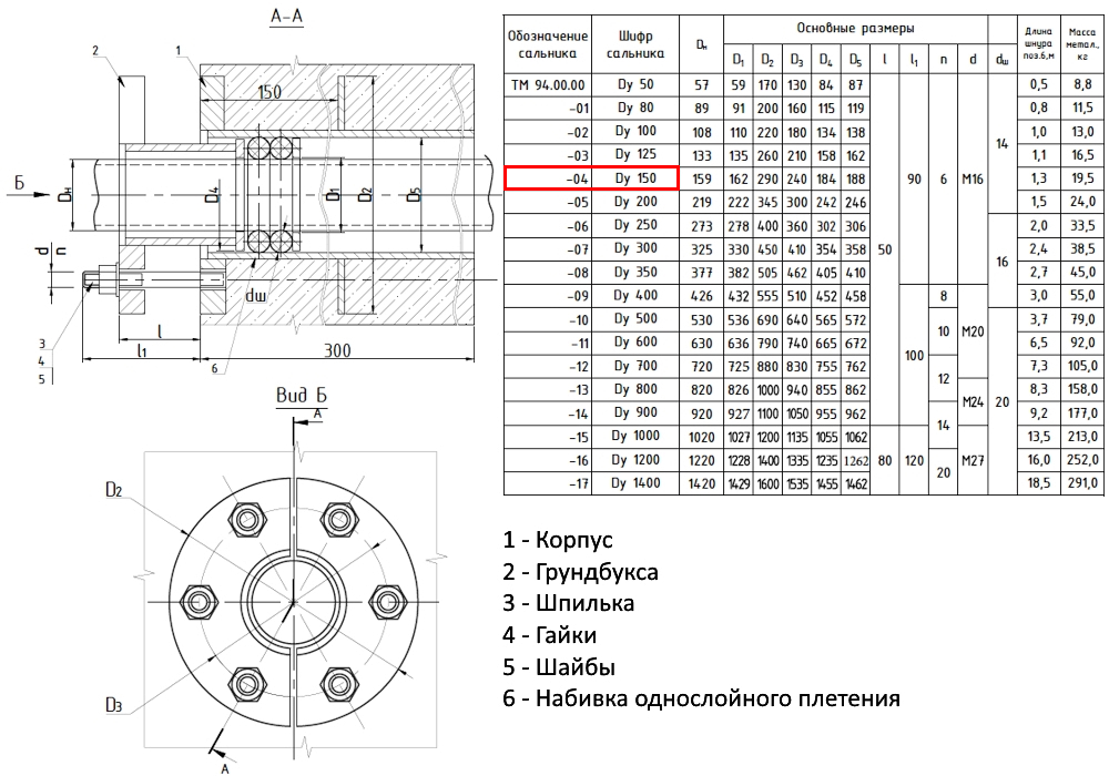 Сальник нажимной ТМ 94-04 Ду 150 L=300мм серия 5.900-3 ТМ 94.00.00-04