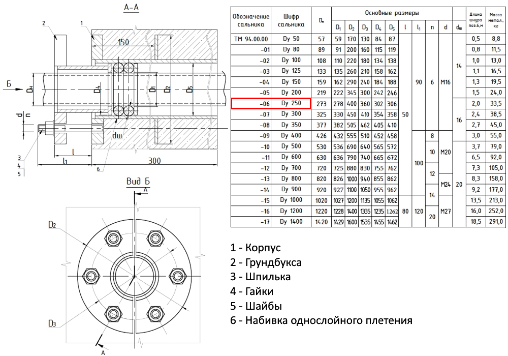 Сальник нажимной ТМ 94-06 Ду 250 L=300мм серия 5.900-3 ТМ 94.00.00-06