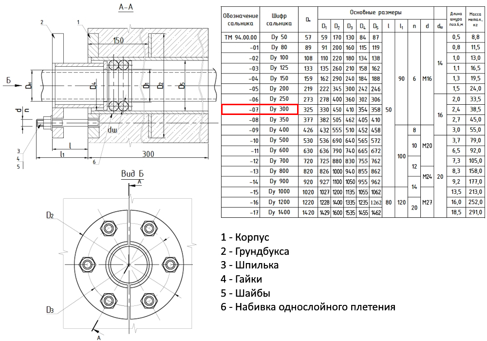 Сальник нажимной ТМ 94-07 Ду 300 L=300мм серия 5.900-3 ТМ 94.00.00-07