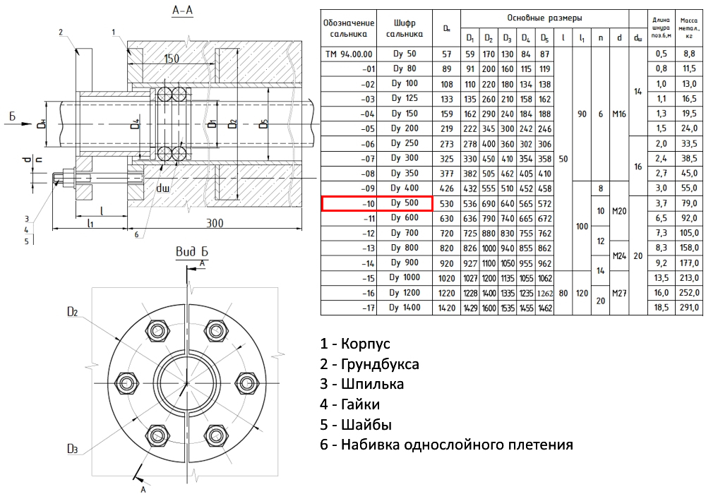 Сальник нажимной ТМ 94-10 Ду 500 L=300мм серия 5.900-3 ТМ 94.00.00-10