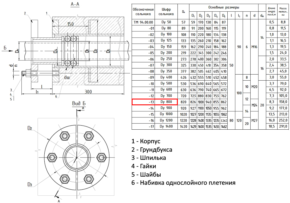 Сальник нажимной ТМ 94-13 Ду 800 L=300мм серия 5.900-3 ТМ 94.00.00-13