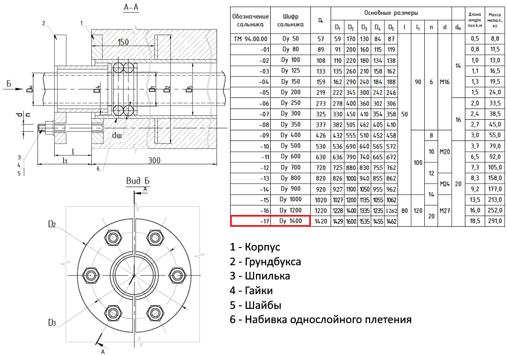 Сальник нажимной ТМ 94-17 Ду 1400 L=300мм серия 5.900-3 ТМ 94.00.00-17