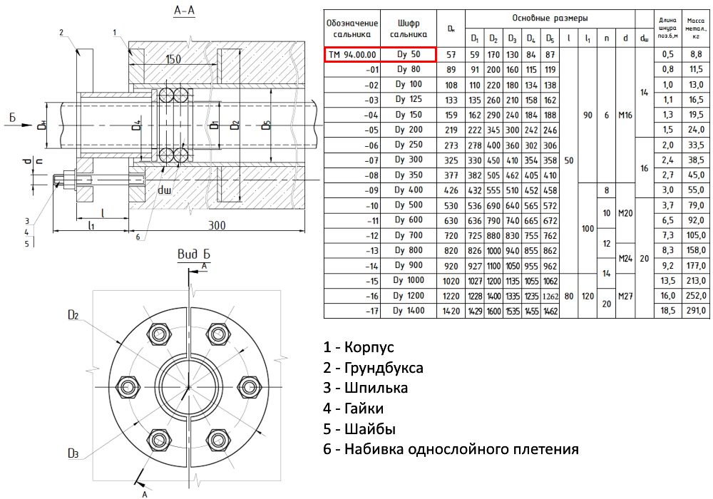 Сальник нажимной ТМ 94 Ду 50 L=300мм серия 5.900-3 ТМ 94.00.00