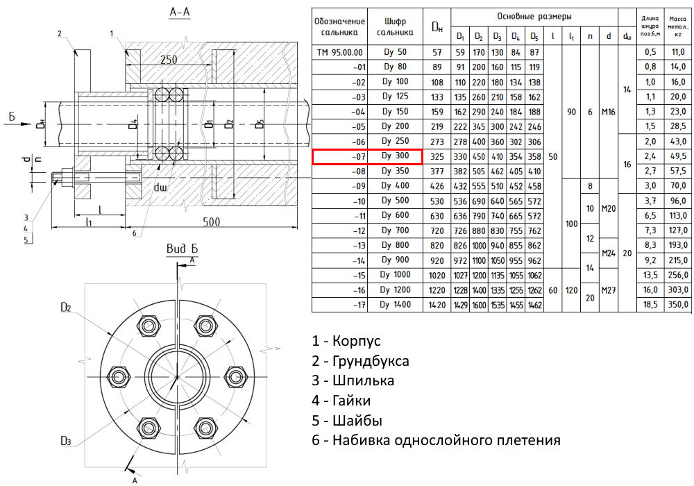 Сальник нажимной ТМ 95-07 Ду 300 L=500мм серия 5.900-3 ТМ 95.00.00-07