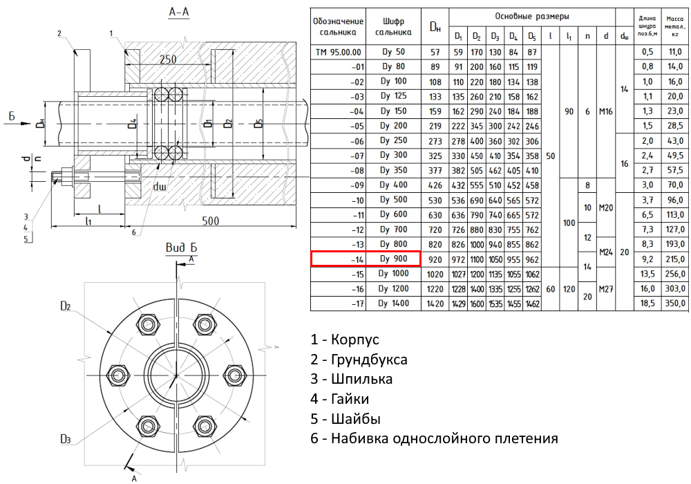 Сальник нажимной ТМ 95-14 Ду 900 L=500мм серия 5.900-3 ТМ 95.00.00-14