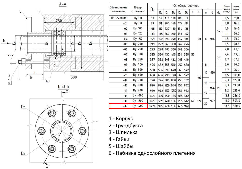 Сальник нажимной ТМ 95-17 Ду 1400 L=500мм серия 5.900-3 ТМ 95.00.00-17