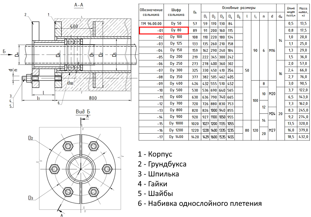 Сальник нажимной ТМ 96-01 Ду 80 L=800мм серия 5.900-3 ТМ 96.00.00-01
