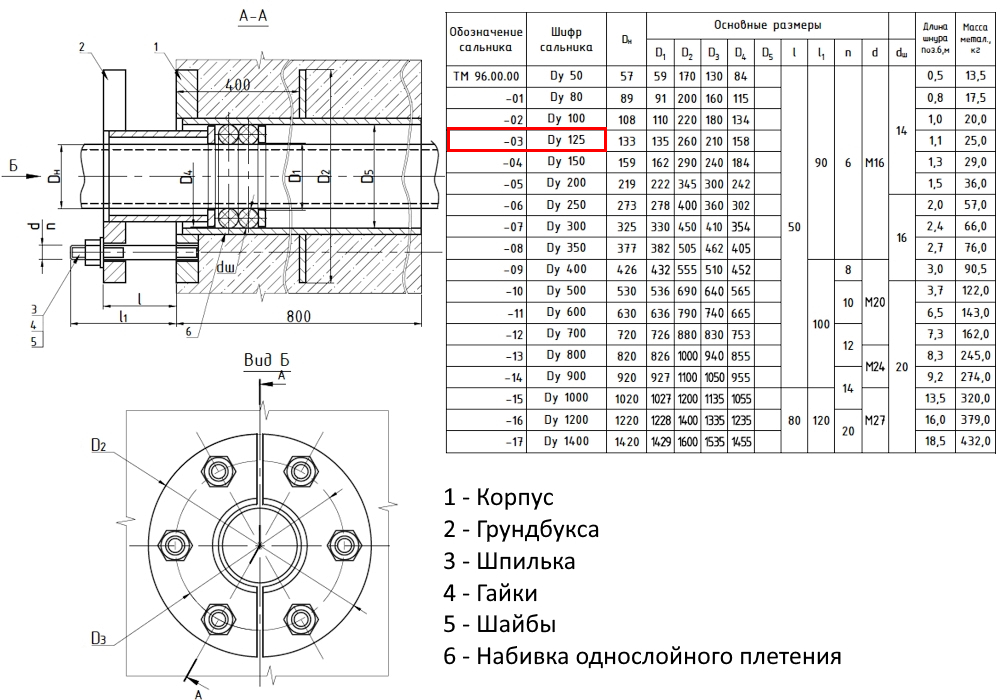 Сальник нажимной ТМ 96-03 Ду 125 L=800мм серия 5.900-3 ТМ 96.00.00-03