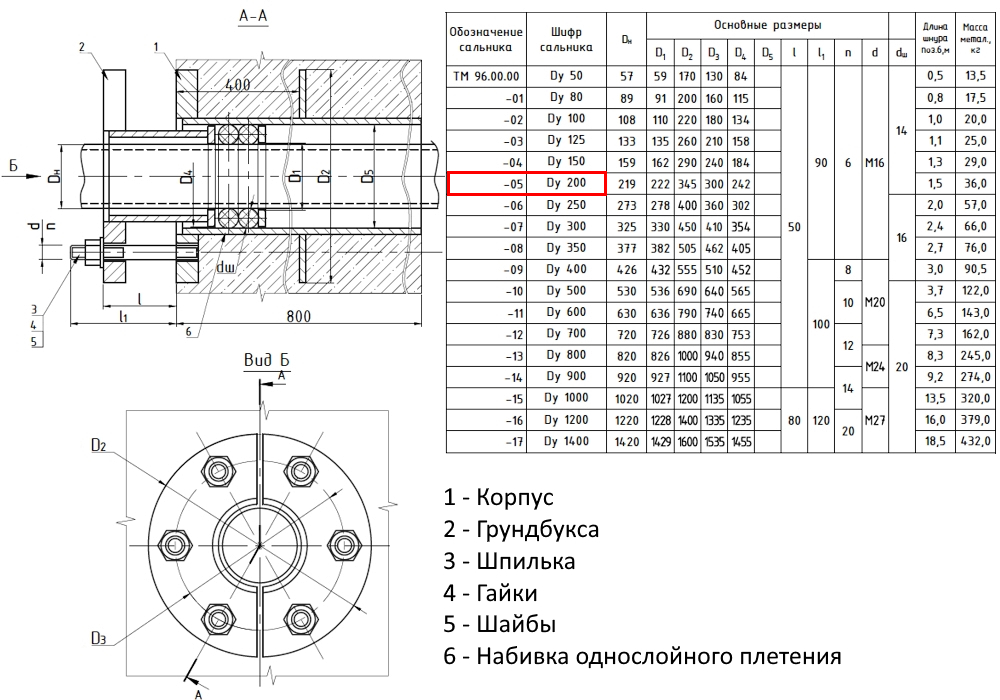 Сальник нажимной ТМ 96-05 Ду 200 L=800мм серия 5.900-3 ТМ 96.00.00-05