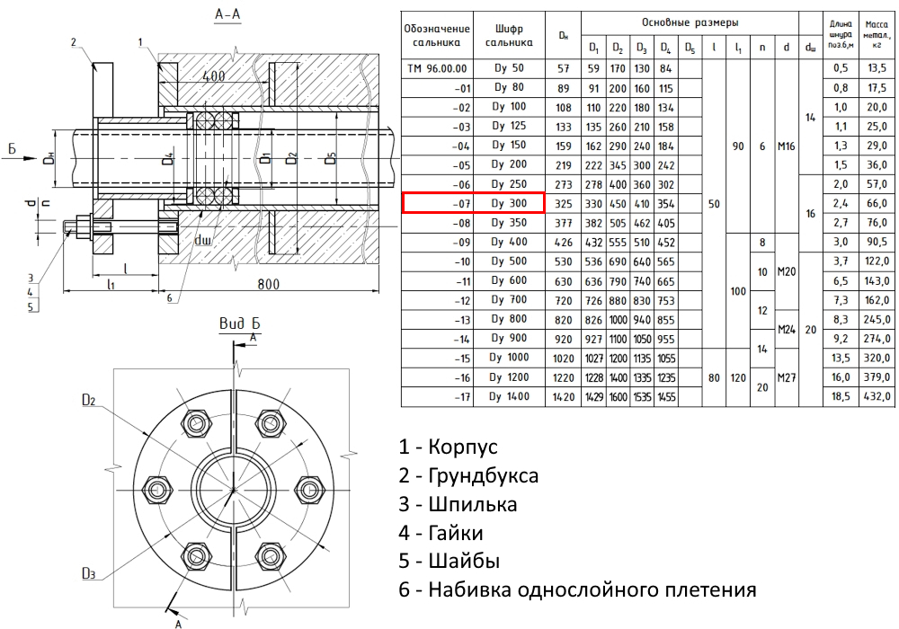 Сальник нажимной ТМ 96-07 Ду 300 L=800мм серия 5.900-3 ТМ 96.00.00-07