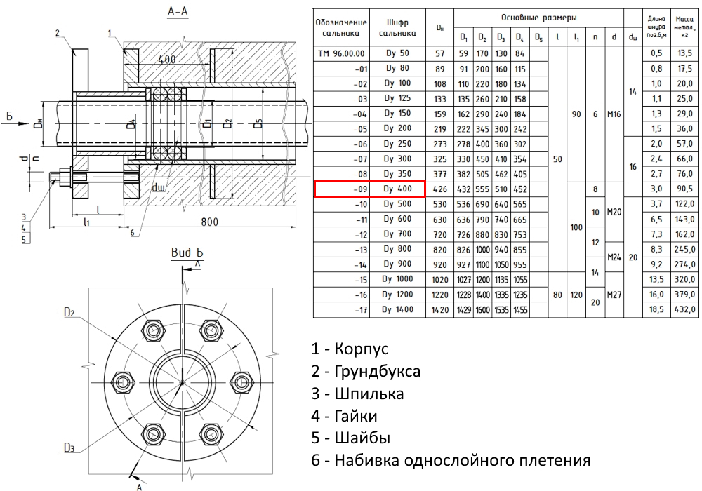 Сальник нажимной ТМ 96-09 Ду 400 L=800мм серия 5.900-3 ТМ 96.00.00-09
