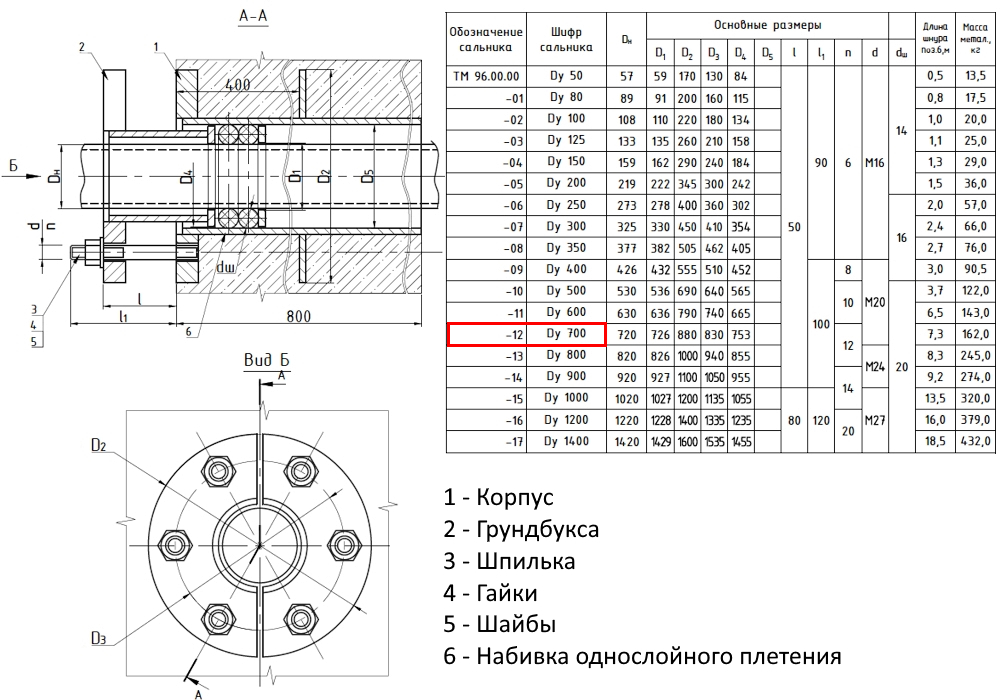 Сальник нажимной ТМ 96-12 Ду 700 L=800мм серия 5.900-3 ТМ 96.00.00-12