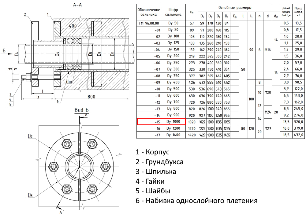 Сальник нажимной ТМ 96-15 Ду 1000 L=800мм серия 5.900-3 ТМ 96.00.00-15