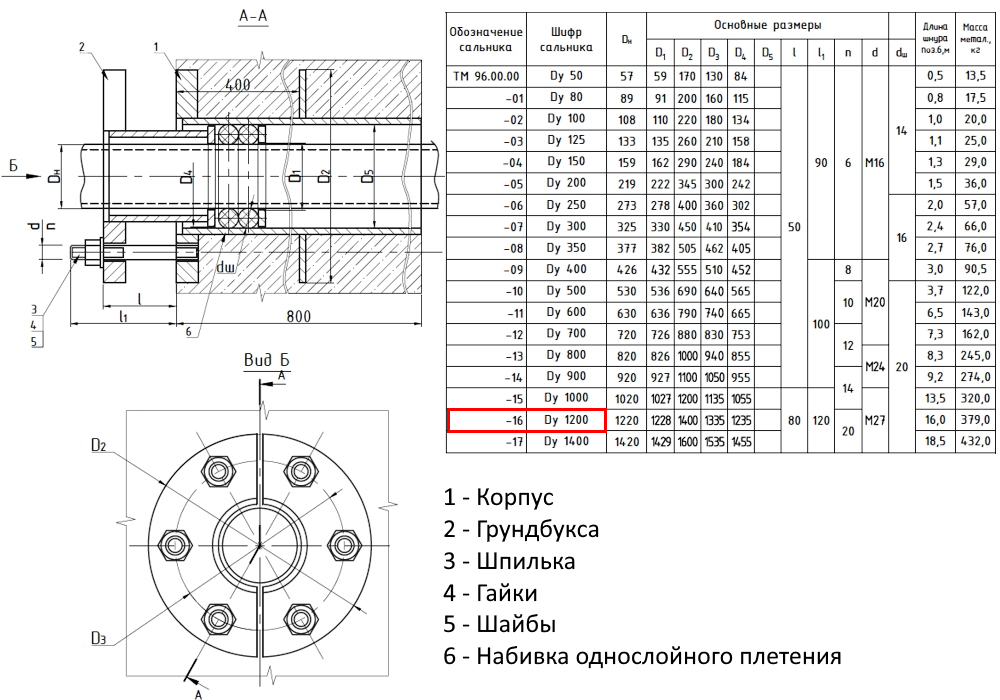 Сальник нажимной ТМ 96-16 Ду 1200 L=800мм серия 5.900-3 ТМ 96.00.00-16