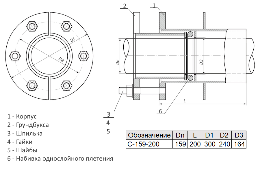 Сальник нажимной С-159-200 ТММ 18-03 Ду 159 L=200мм