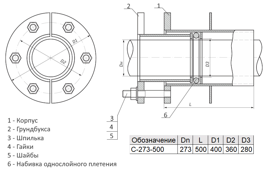 Сальник нажимной С-273-500 ТММ 18-03 Ду 273 L=500мм