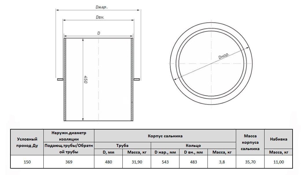 Сальник Серия 3.903 КЛ-13 вып.0-1 Ду 150 для тепловых сетей