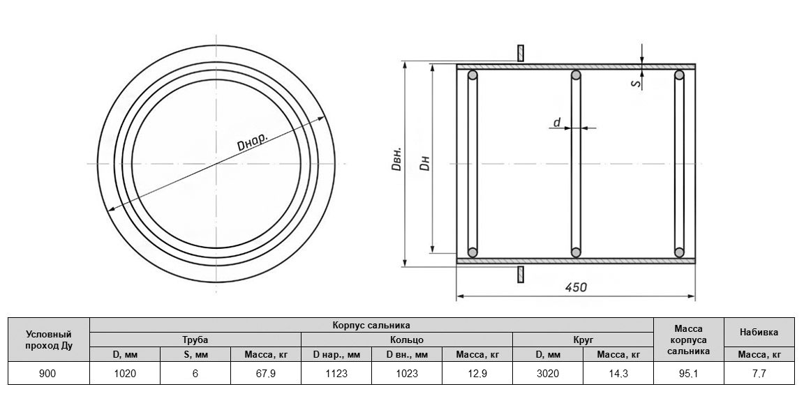 Сальник Серия 3.903 КЛ-13 вып.0-1 Ду 900 для инженерных сетей