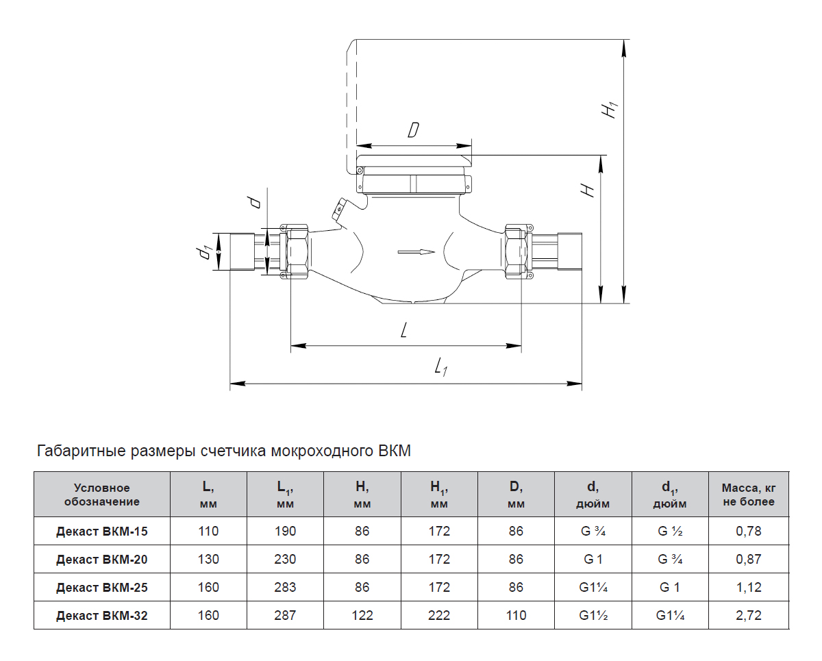 Счетчик мокроходный Декаст ВКМ-15 mini S холодной воды