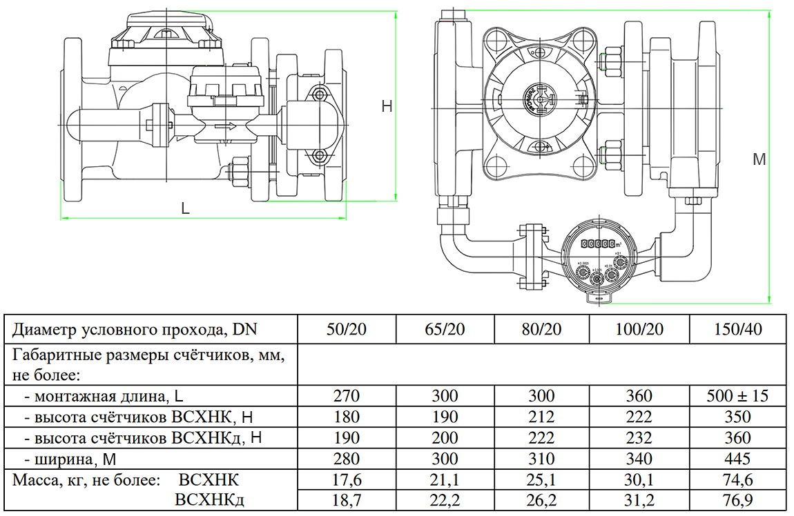 Счетчик для холодной воды Тепловодомер ВСХНК-150/40 комбинированный фланцевый