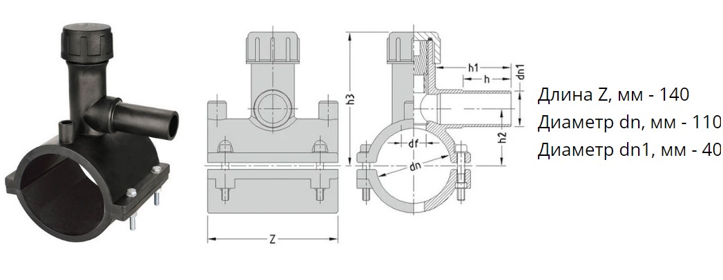 Седелка с фрезой э/с 110х40 мм SDR11 ПЭ100 электросварная для врезки под давлением ПНД труб