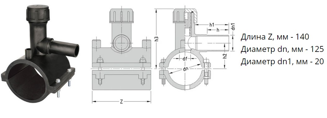 Седелка с фрезой э/с 125х20 мм SDR11 ПЭ100 электросварная для врезки под давлением ПНД труб