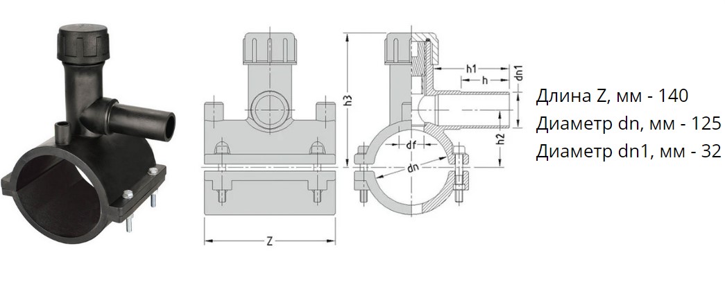 Седелка с фрезой э/с 125х32 мм SDR11 ПЭ100 электросварная для врезки под давлением ПНД труб