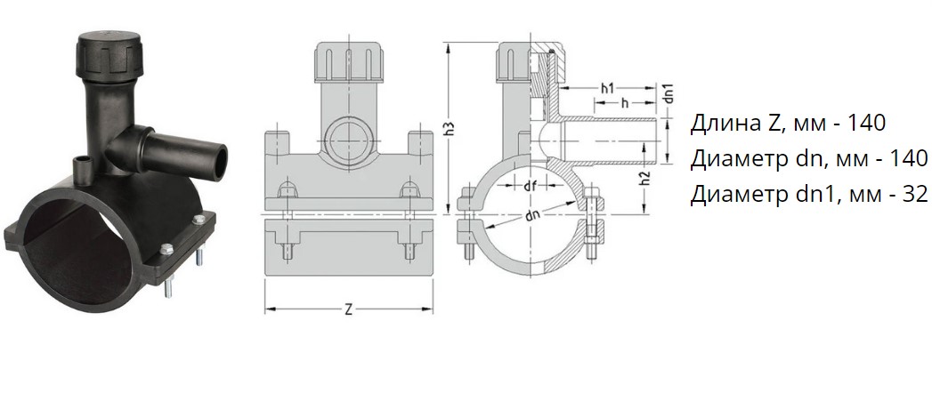 Седелка с фрезой э/с 140х32 мм SDR11 ПЭ100 электросварная для врезки под давлением ПНД труб