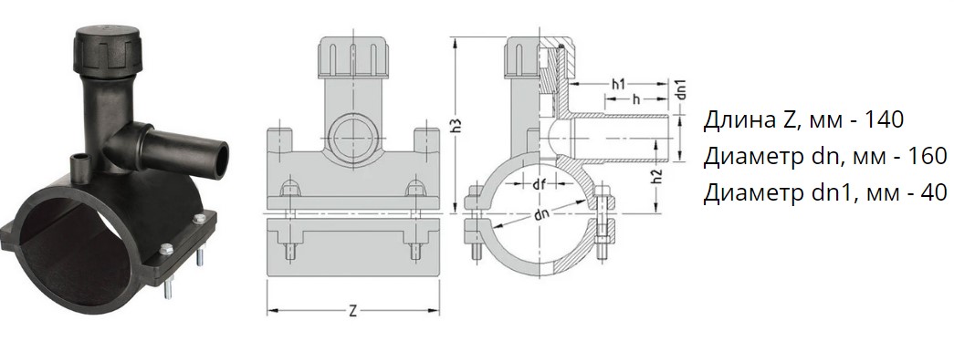 Седелка с фрезой э/с 160х40 мм SDR11 ПЭ100 электросварная для врезки под давлением ПНД труб