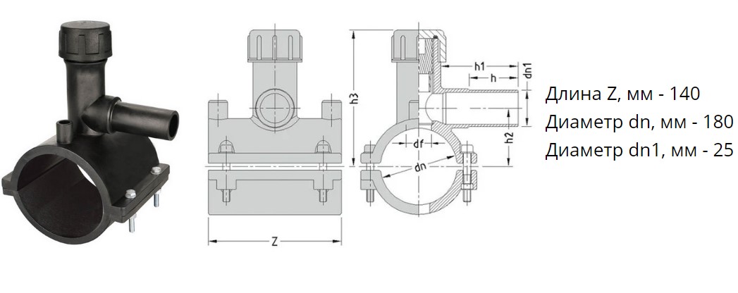 Седелка с фрезой э/с 180х25 мм SDR11 ПЭ100 электросварная для врезки под давлением ПНД труб