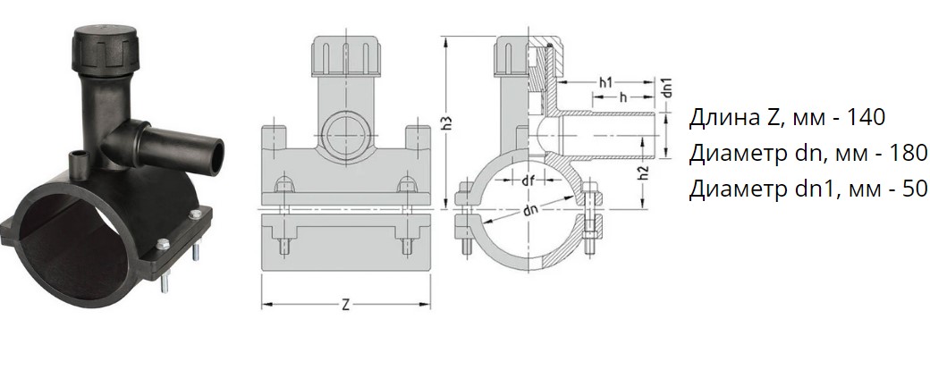 Седелка с фрезой э/с 180х50 мм SDR11 ПЭ100 электросварная для врезки под давлением ПНД труб