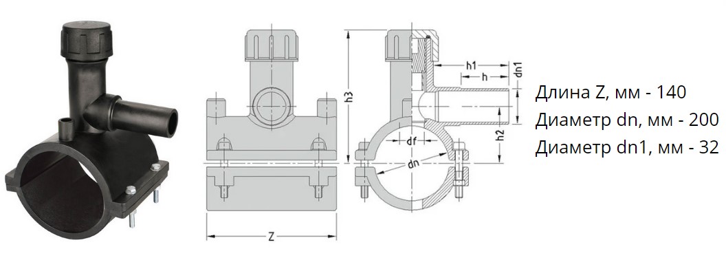 Седелка с фрезой э/с 200х32 мм SDR11 ПЭ100 электросварная для врезки под давлением ПНД труб