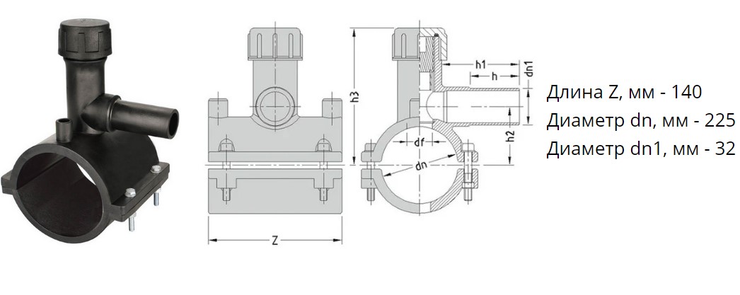 Седелка с фрезой э/с 225х32 мм SDR11 ПЭ100 электросварная для врезки под давлением ПНД труб